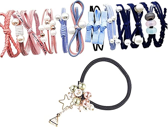 ヘアゴム おしゃれ 13個セット 女性 ヘアアクセサリー 髪留め レーディス リングゴム シンプル かわいい ゴムレディース パール ヘアバンド (ピンク ライトブルー ブラック) a