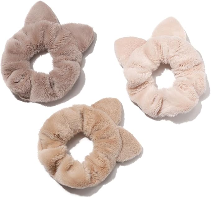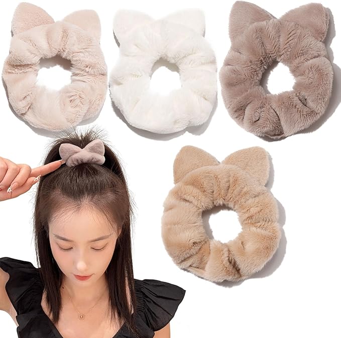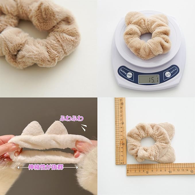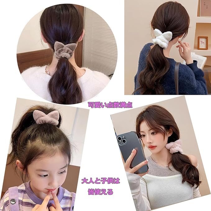 shefun ベロア シュシュ モコモコ ふわふわ 髪飾り 大人 ファー ヘアゴム 猫耳 4本セット 秋冬 レディース ヘアアクセ ベルベットシュシュ 可愛い 大きめ おしゃれ 髪ゴム JP240 a