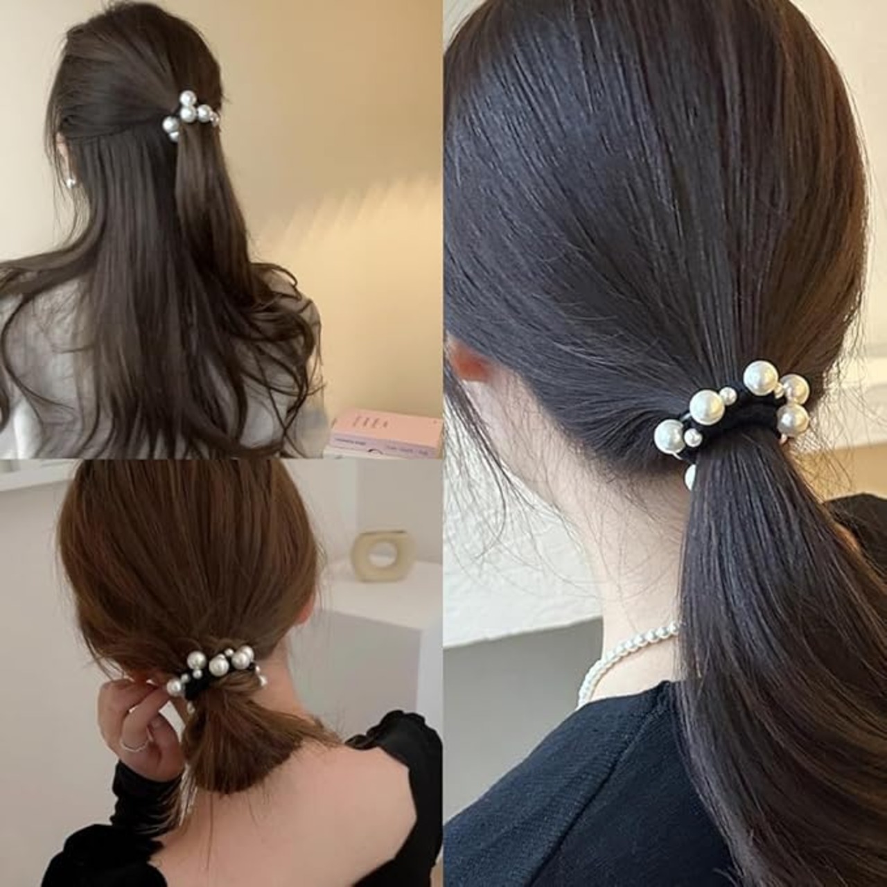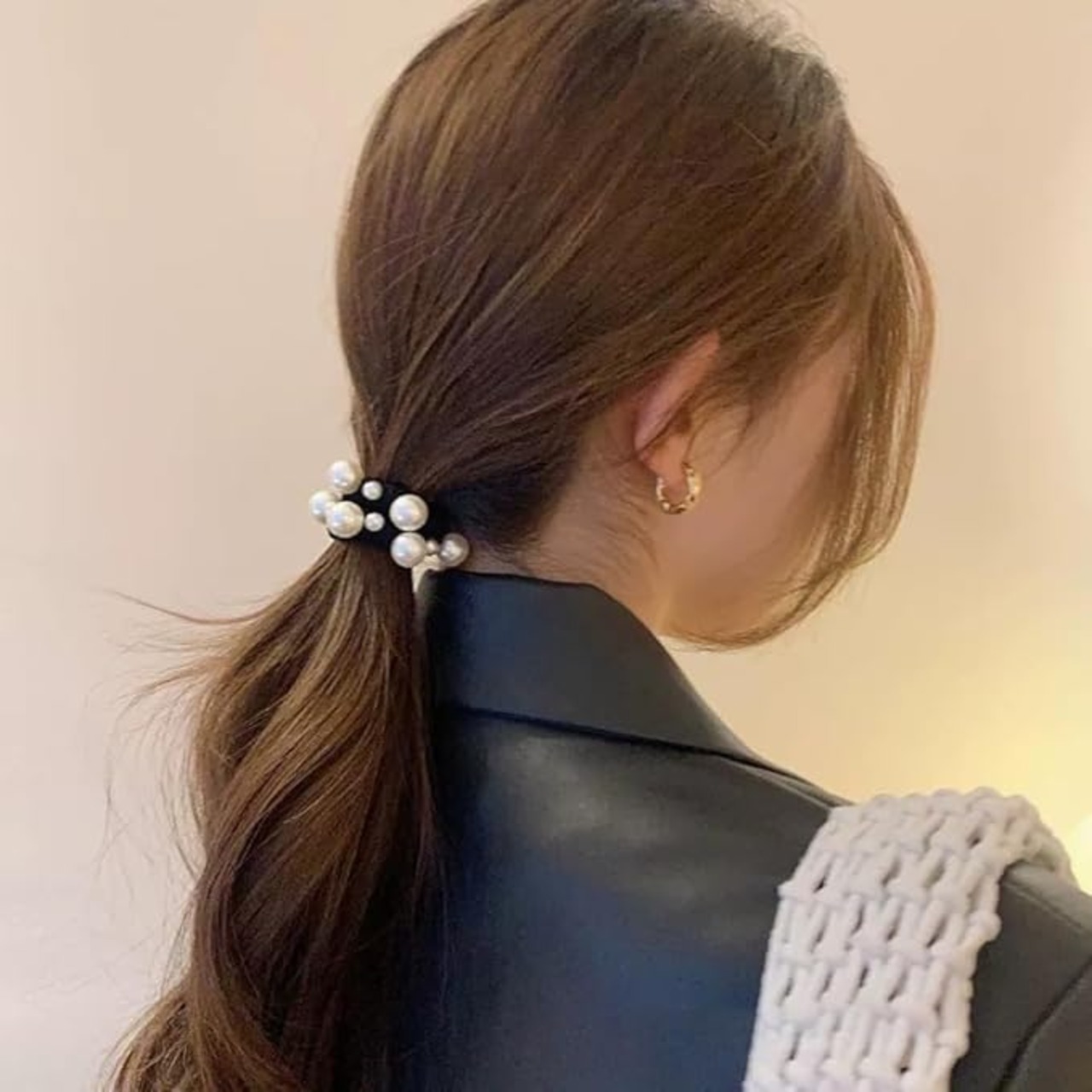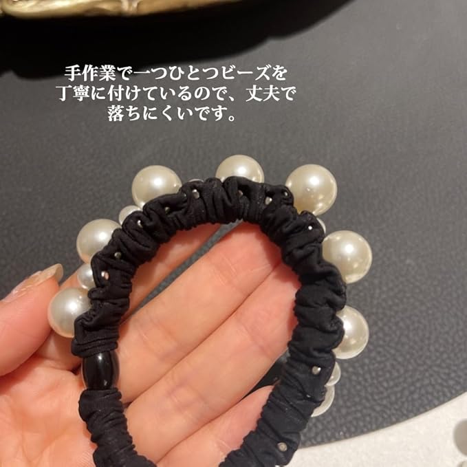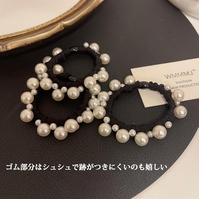 ヘアゴム パール 2個セット シュシュ ランダムパール レディース ヘアアクセサリー 飾り付き おしゃれ 上品 シンプル 大人 結婚式 韓国風 a