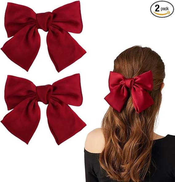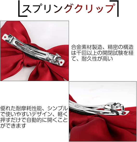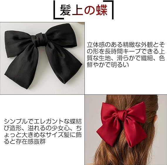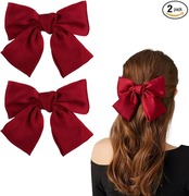 サムコス ヘアアクセサリー リボン 大きめ 髪飾り ヘアピン クリップ式 かわいい エレガント 蝶結び 2個入り 入学式 成人式 親子 (ワインレッド) a