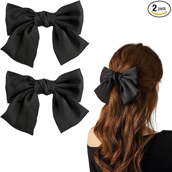 サムコス ヘアアクセサリー リボン 大きめ 髪飾り ヘアピン クリップ式 かわいい エレガント 蝶結び 2個入り 入学式 成人式 親子 (黒色) a