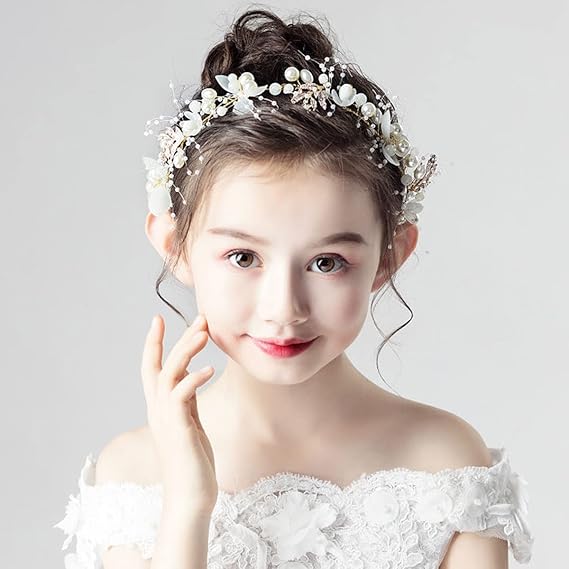 サムコス 髪飾り ヘアバンド カチューシャ 花冠 クラウン 女の子 子供ヘッドドレス ヘアアクセサリー 結婚式/披露宴/卒業式/入学式/パーティー/ダンス/和装/撮影 (クラシックパール ホワイト) a