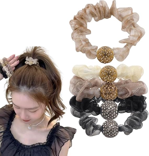 shefun シュシュ シルク 跡がつかない ヘアゴム 5個セット 大人 髪ゴム メタルプレート シルクゴム おしゃれ ボリューム レディース 髪飾り JP221 a