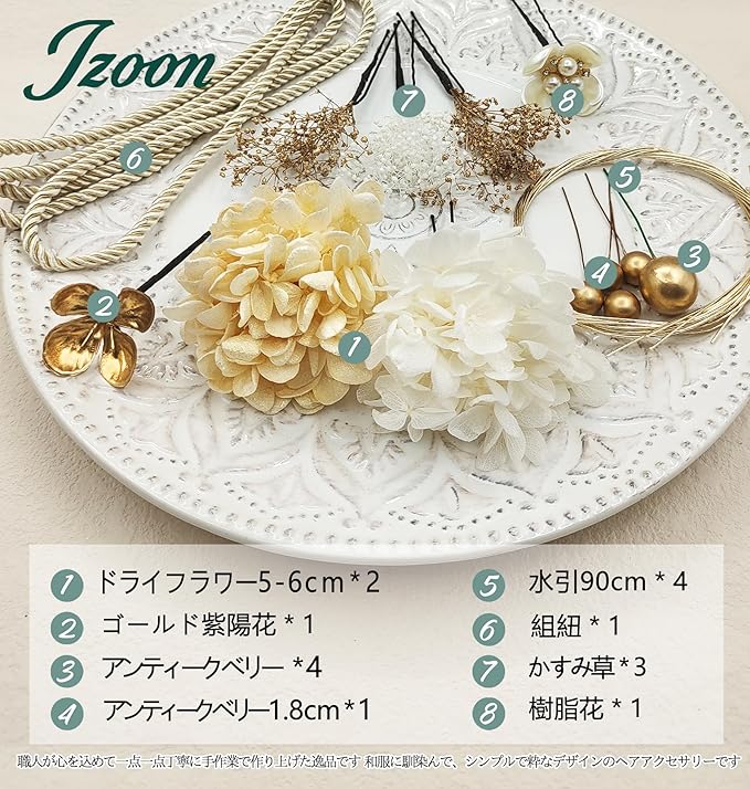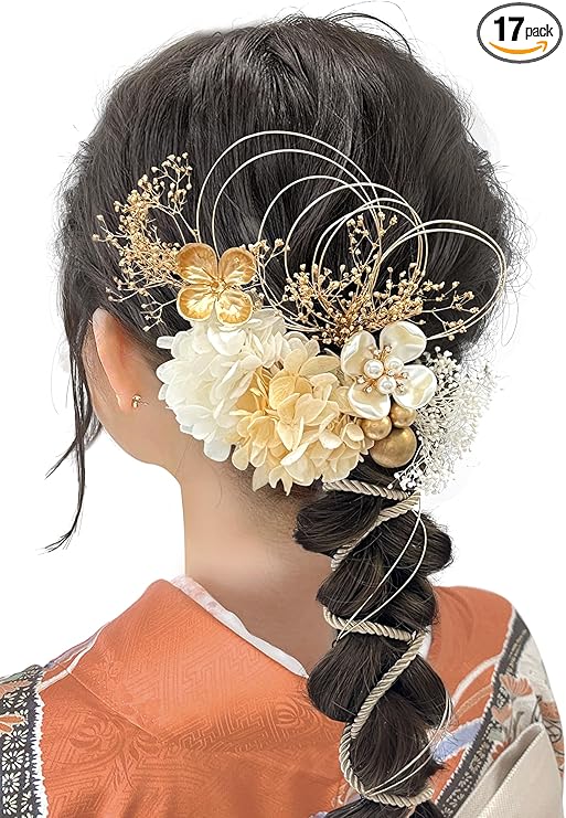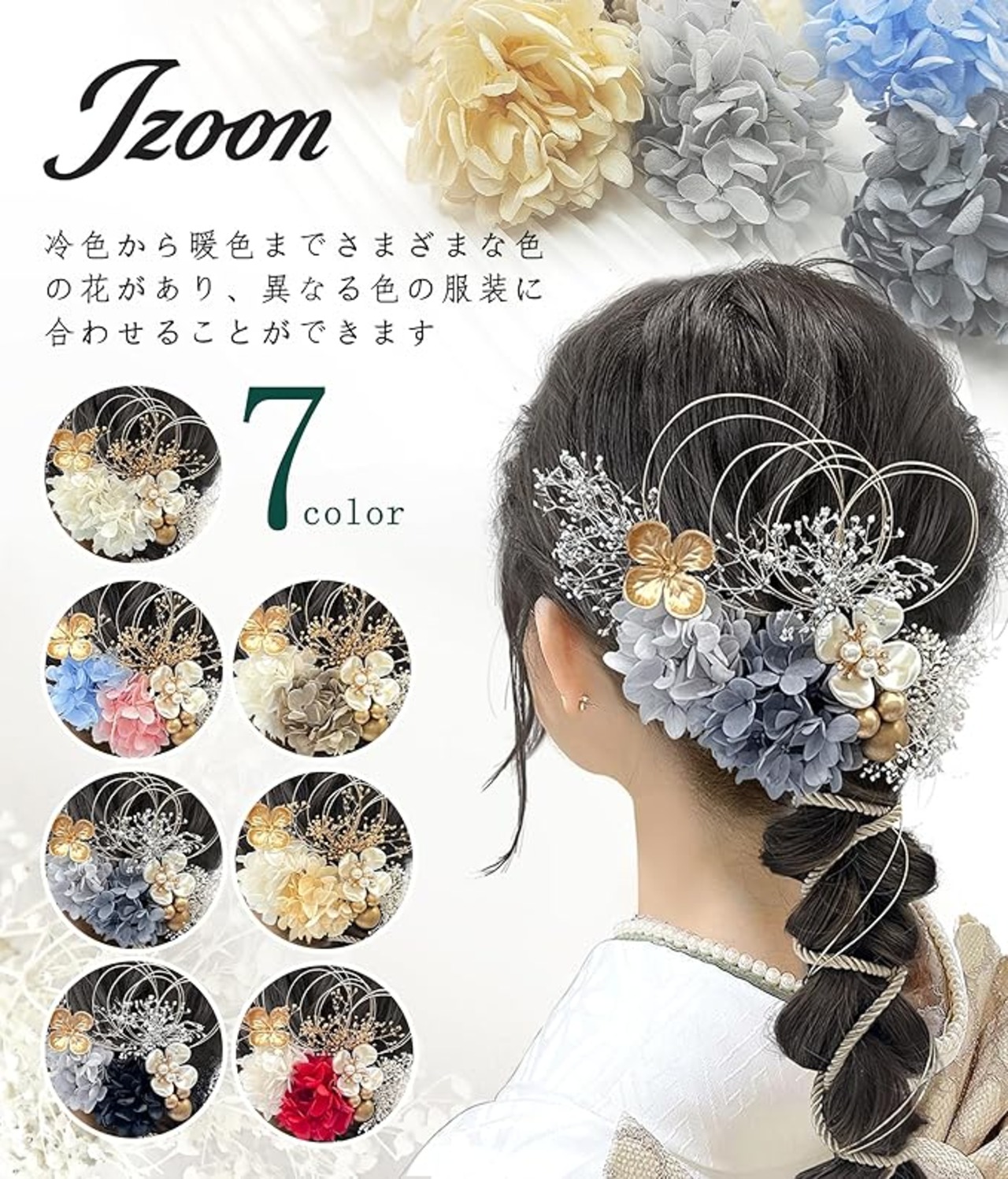 [JZOON] 髪飾り 人気 髪飾り セット ヘアアクセサリー ヘアーアレンジ 花 ドライフラワー 水引 振袖 和服 和装 着物 袴 浴衣 成人式 結婚式 卒業式 七五三 お祭り ポニーテール a