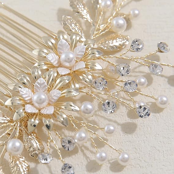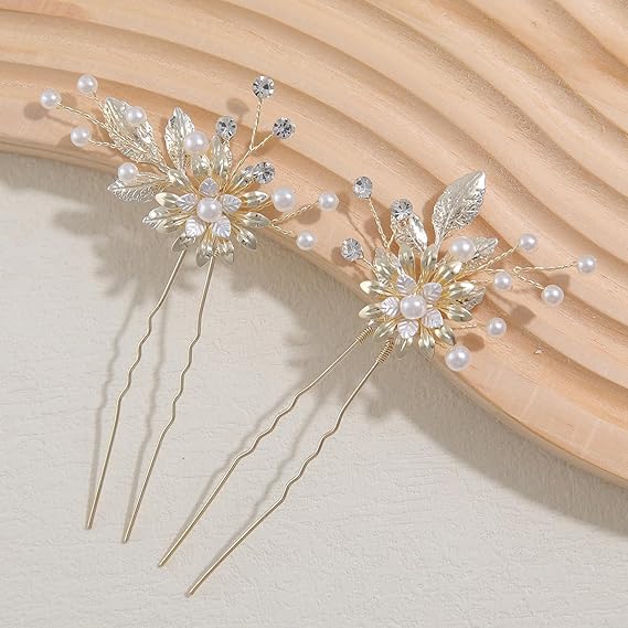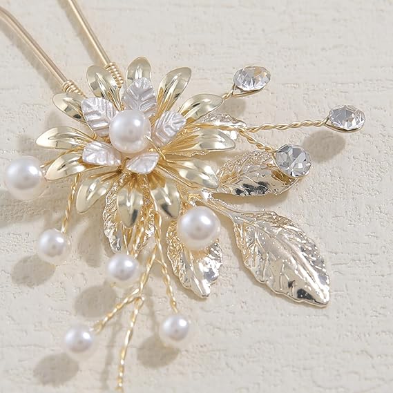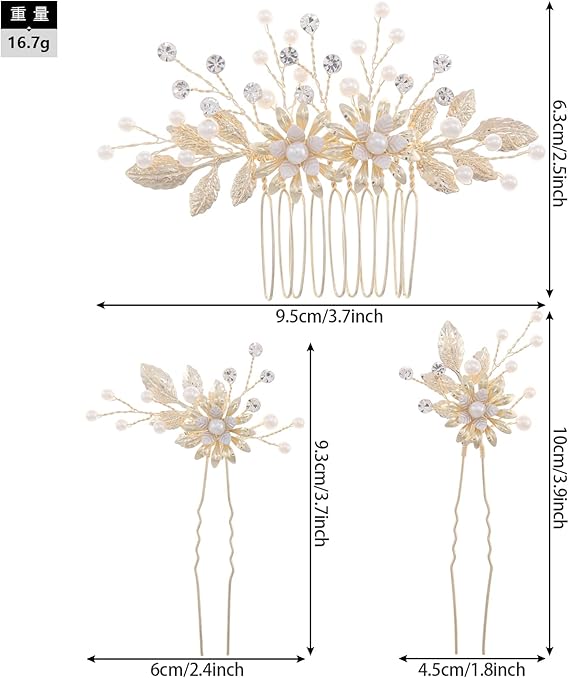 Famihot 髪飾り ヘッドドレス 花モチーフ パール コーム ヘアピン 3本セット 繊細なヘアアクセサリー ウェディング 結婚式 お呼ばれ 披露宴 卒業式 発表会 和装用 手作り髪飾り (タイプ09) a