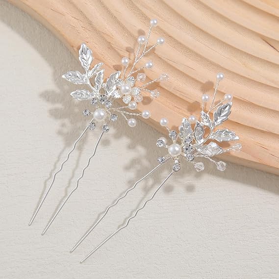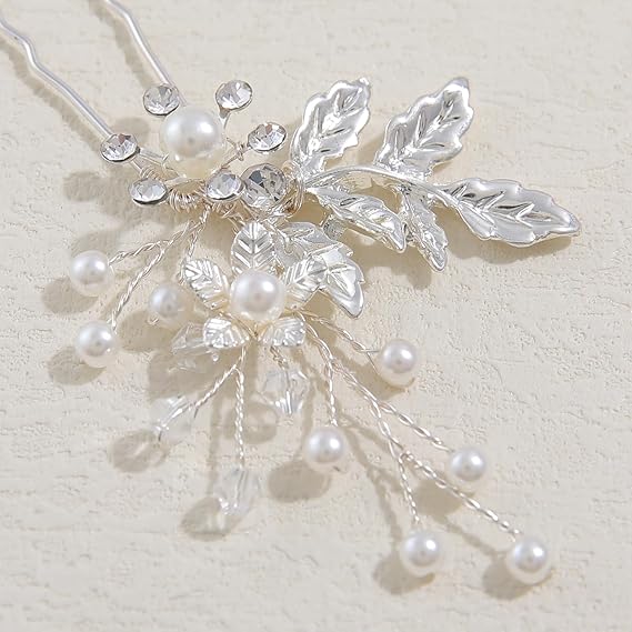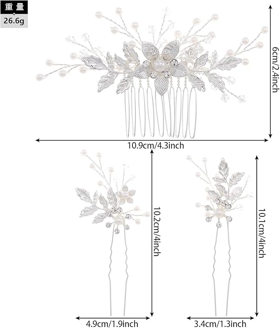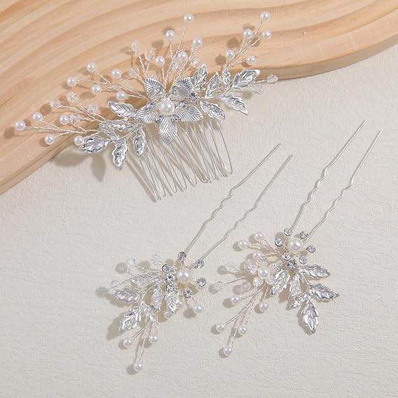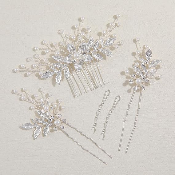 Famihot 髪飾り ヘッドドレス 花モチーフ パール コーム ヘアピン 3本セット 繊細なヘアアクセサリー ウェディング 結婚式 お呼ばれ 披露宴 卒業式 発表会 和装用 手作り髪飾り (タイプ06) a