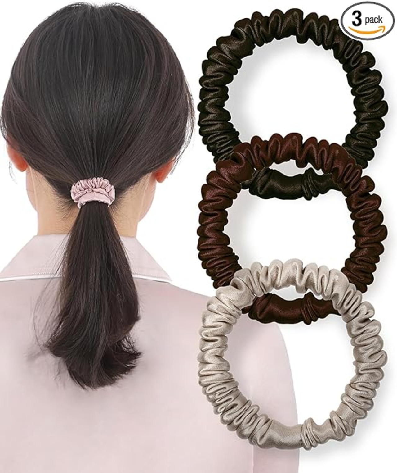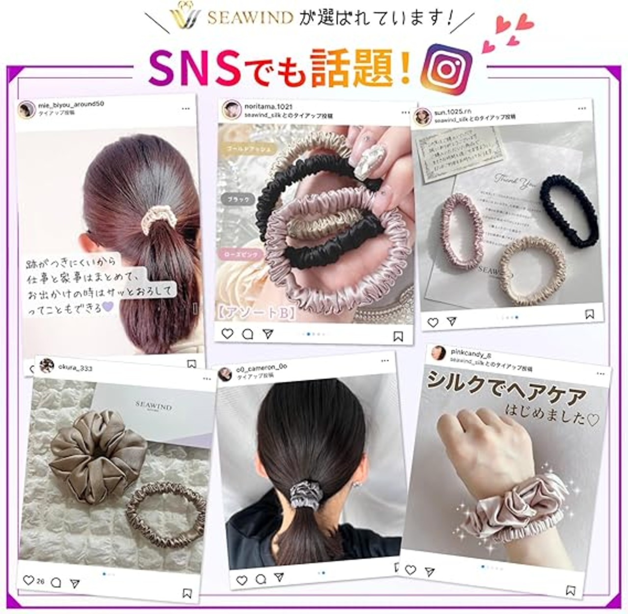 【ヘアケアのプロ監修】 シルク ヘアゴム シュシュ 髪ゴム シルクゴム 跡がつかない SILK100% おしゃれ 太め 3個セット (アソートD) a