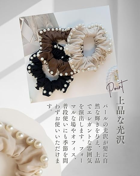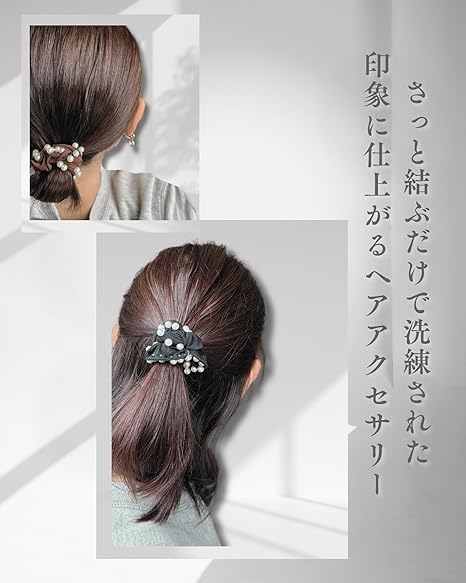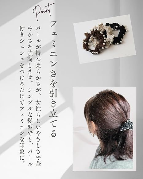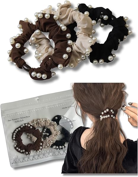 mAkibA ヘアゴム パール 3個セット シュシュ ヘアアクセサリー 髪ゴム オシャレ かわいい おしゃれ 髪飾り 跡がつかないヘアゴム よく伸びる ゴム 髪 ヘアアレンジ 女性 大人 結婚式 パーティー フォーマル (Bセット) a