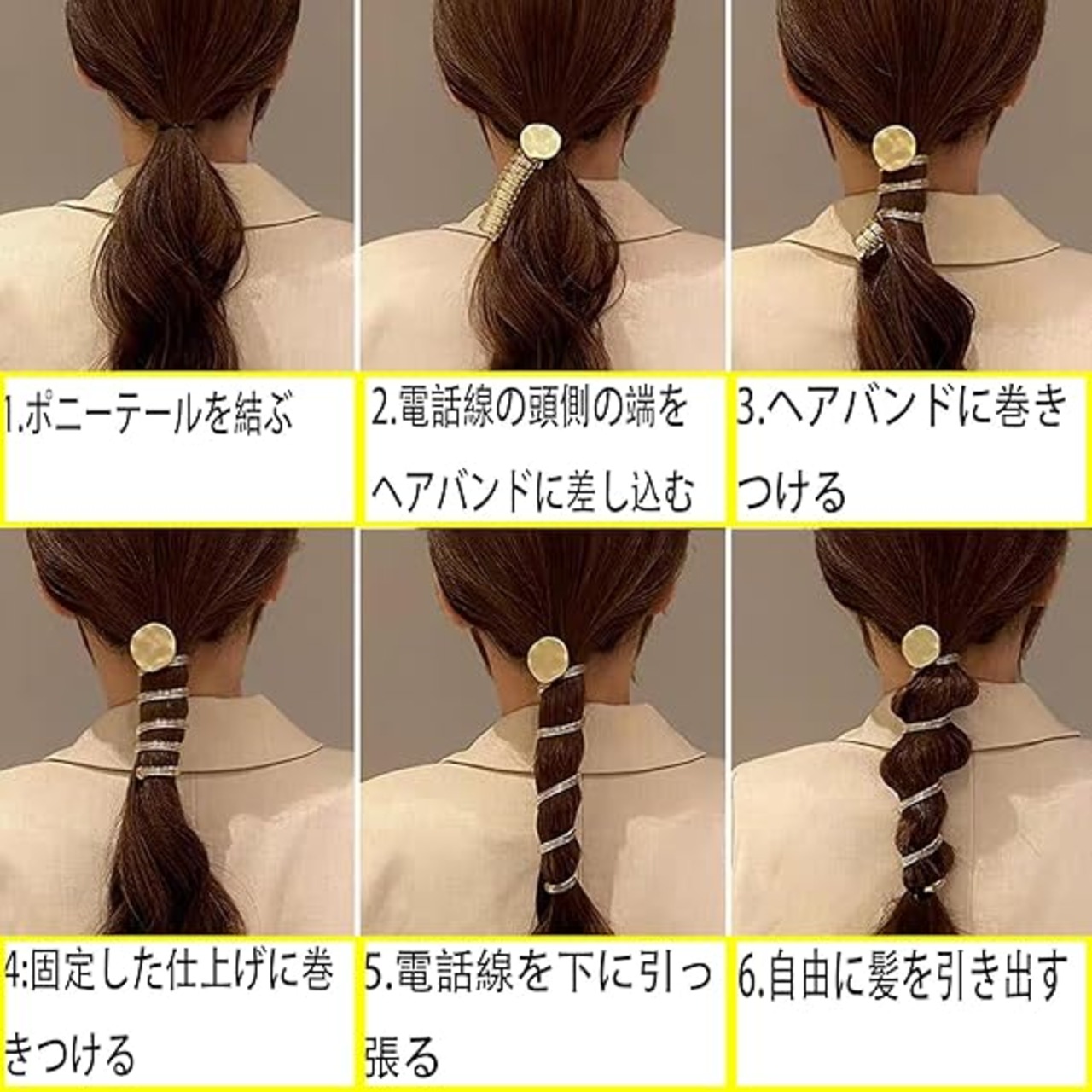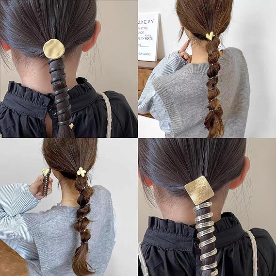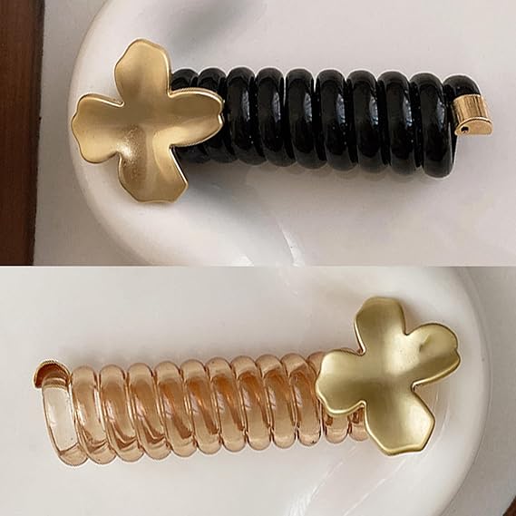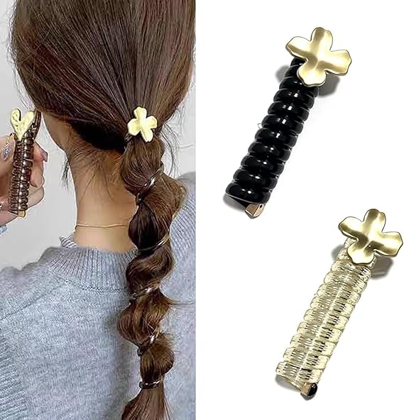 HAPVITAL ポニーテールホルダー、スパイラルヘアゴム、ゴム、コイルポニー コイルアップ ワイヤーポニー ヘアアクセサリー ヘアアクセ 電話コードスパイラルヘアゴム - 女の、電話コード型ヘアゴム、ヘアゴム (メタリッククローバー) a
