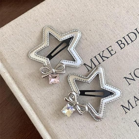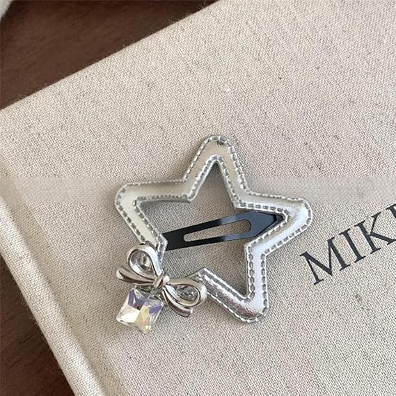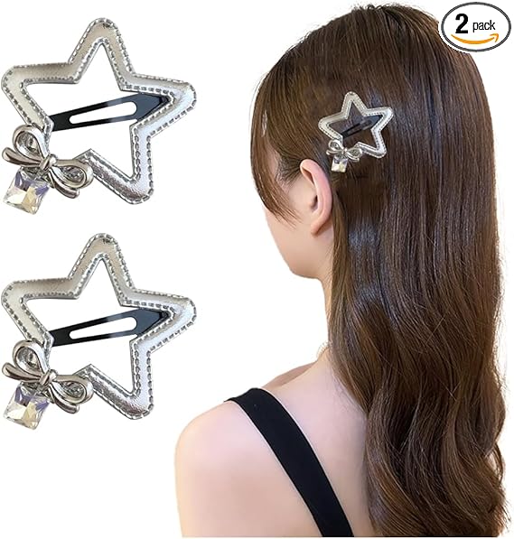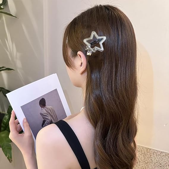 FASELE ヘアクリップ バレッタ 髪留め エレガント 大人 可愛い 優しい 髪飾り 銀色星 キラキラ 女性 おしゃれ 日常 通勤通学 誕生日 発表会 結婚式 卒業式 入学式 パーティー 記念日 プレゼント 2点セット b