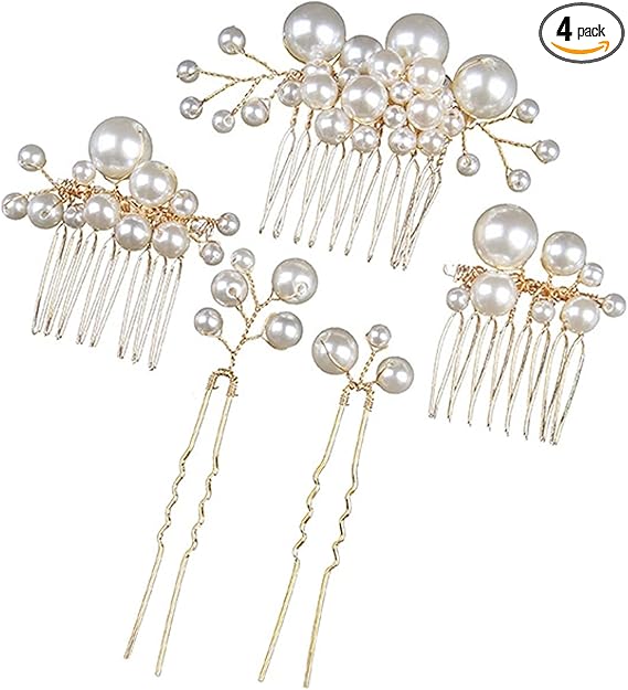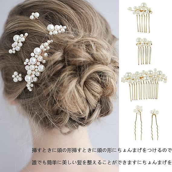 ヘッドドレス 髪飾り パールヘアピン ブライダルウェディング 普段使い/結婚式/ウェディング/パーティー/花嫁などの髪飾り用 3種類5本セット a