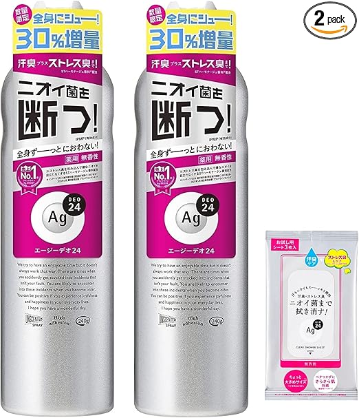 【まとめ買い】エージーデオ24 パウダースプレー (医薬部外品)無香性 XL 240g×2個 +おまけ ニオイ 殺菌 汗臭 体臭 制汗剤 デオドラント 全身 ストレス臭 a
