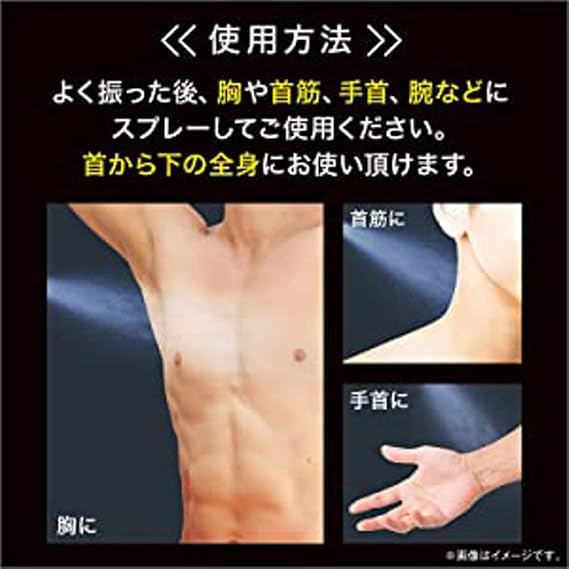 よく振った後、胸や首筋、手首、腕などにスプレーしてご使用くだ