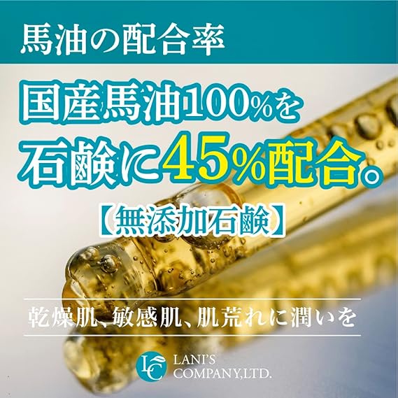 国産馬油100%を石鹸に45%配合 コールドプロセス製法 40日熟成 無添加石鹸