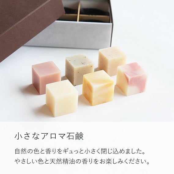 【カラフルでかわいい石鹸】天然アロマをせっけんに閉じ込めて、お菓子のように小さいキューブ状にしました。