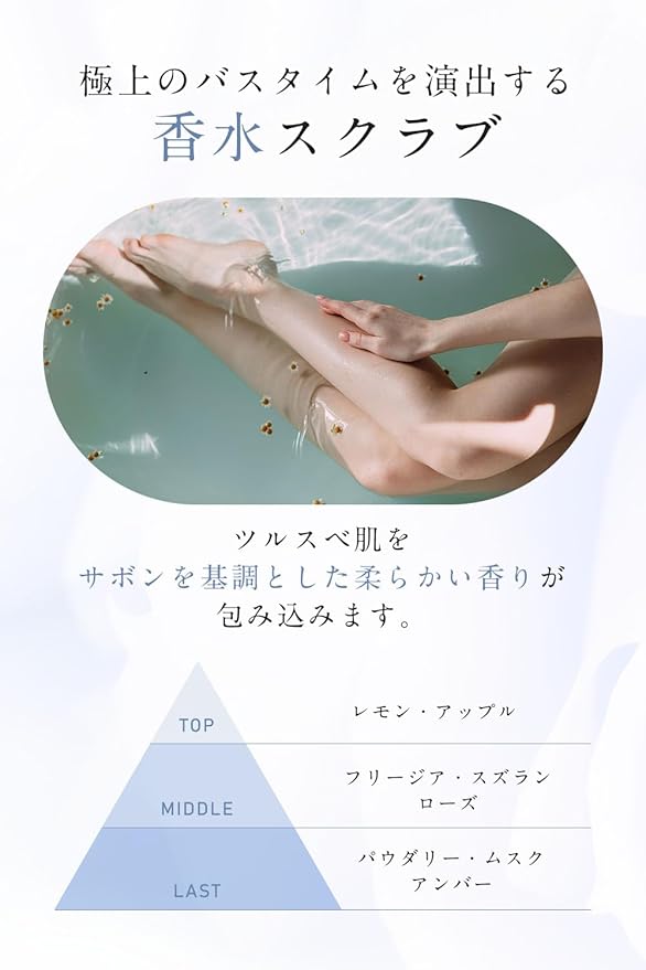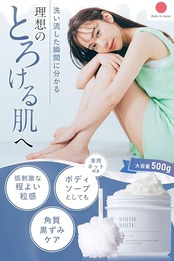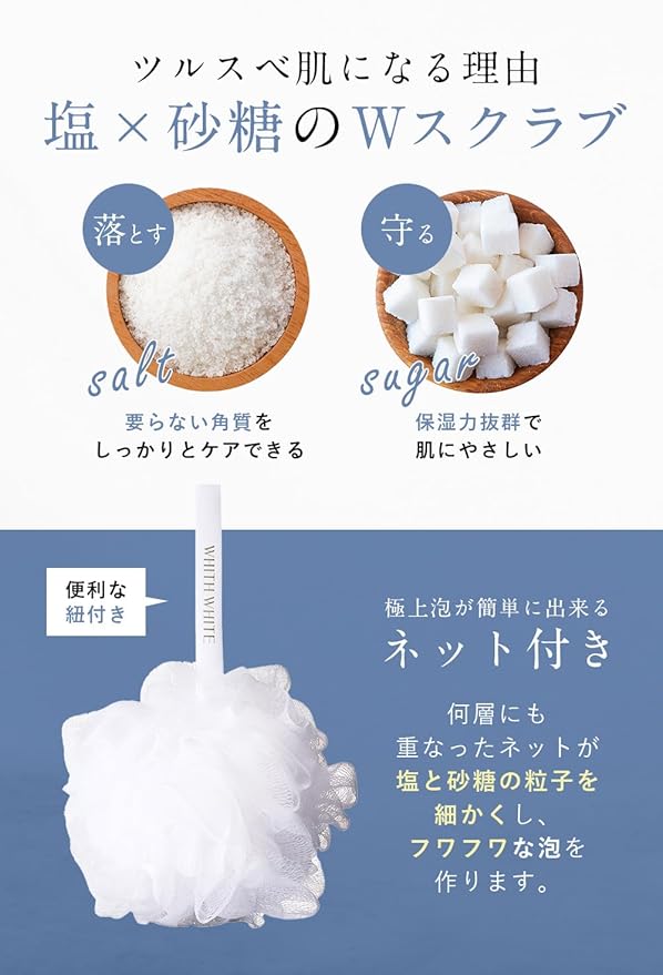 【 とろける肌へ 】美肌にこだわったWHITH WHITE の『ボディスクラブ』!低刺激な程よい粒感のスクラブで、角質/黒ずみケア♪|大容量500g|専用ネット付き