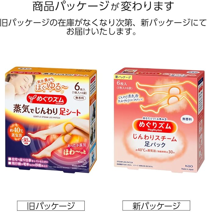 めぐりズム蒸気でじんわり 足シート 無香料 6枚入 a