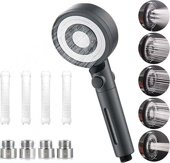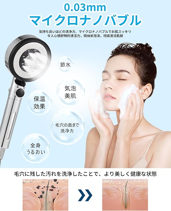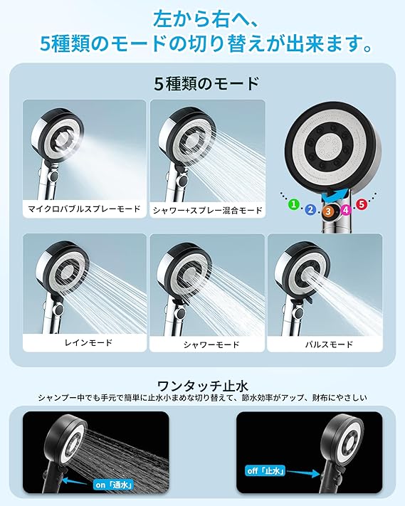 MIGABER シャワーヘッド 節水 マイクロナノバブル 【80%節水率・0.03mm極細出水・5種類のモード】塩素除去 シャワーヘッド 極細水流 肌クア 美髪 5段階モードシャワー ヘッドマ 80%節水 シャワーヘッド 高水圧 手元止水 shower head 浄水カートリッジ4本付き M/K/G/0アダプター付き (ブラック) a