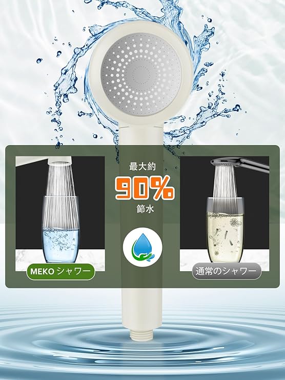 【高圧シャワーヘッド★最大節水90%】マイクロノズル技術を採用し、噴射孔をより微細かつ高密度に設計。水流を高速化・高密度化することで最適な水効率を実現します。低水圧環境下でも安定した強力な水流を維持し、快適なシャワー体験を提供。一般的なハンドシャワーと比較し、水圧90%増加・最大90%の節水を実現します。