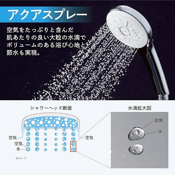 シルクミスト・パワーマッサージ・アクアスプレーの3 つの吐水を搭載した多機能シャワーです。
