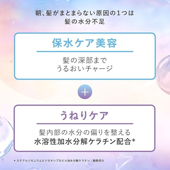 【配合成分】髪内部にとどまる、ぷるぷる浸透ウォーターゼリー*¹配合。 *¹ スイゼンジノリエキス、アルギニン、グリセリン水溶液:保湿成分