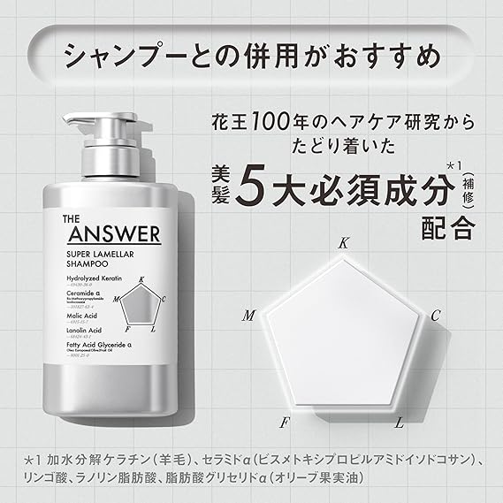 花王100年のヘアケア研究からたどり着いた、 世界初*1、美髪5大必須成分*2(補修)配合シャンプー