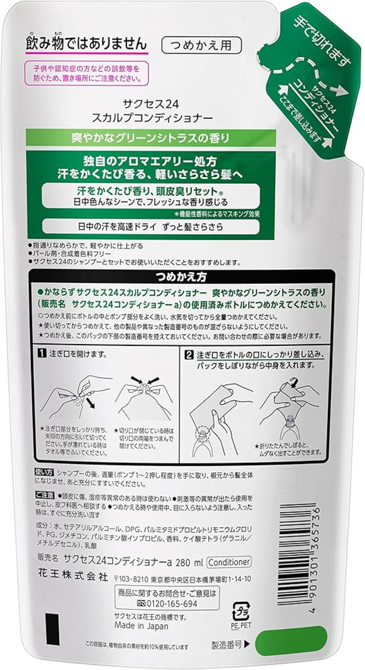サクセス24 スカルプコンディショナー 爽やかなグリーンシトラスの香り つめかえ用 280ml 汗で香り 頭皮臭 リセット a
