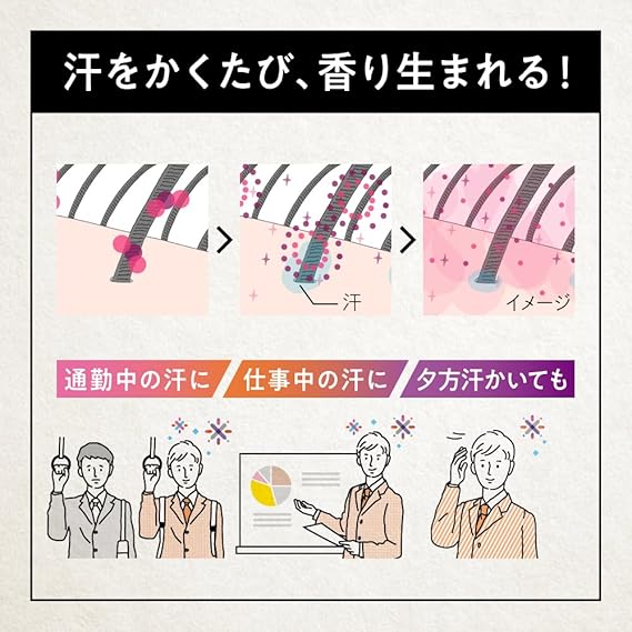 【汗をかくたび香り、頭皮臭リセット※】独自技術の「速乾アロマテクノロジー」。日中のニオイ・ベタつき気にならない。夕方まで清潔感香ります。※機能性香料によるマスキング効果
