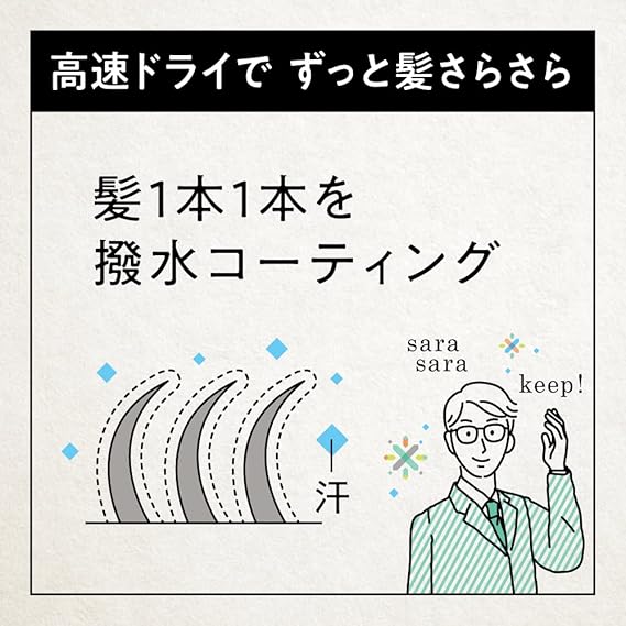 【汗を速乾、髪サラサラ】日中の汗を高速ドライ。サッと乾いて髪サラサラ。
