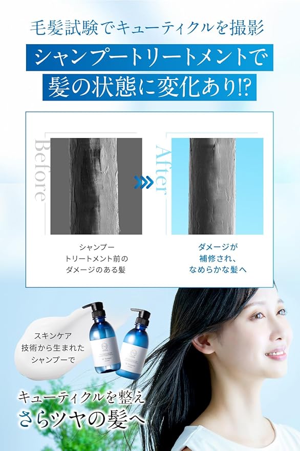 【タンパク質×2種のヒト幹細胞培養液を配合】髪を構成するタンパク質「ケラチン」、ケラチンと結びついて髪のダメージを補修する「ヘマチン」をダブルで配合。また皮膚科学から生まれた次世代成分「ヒト脂肪細胞順化培養液エキス」、「ヒト