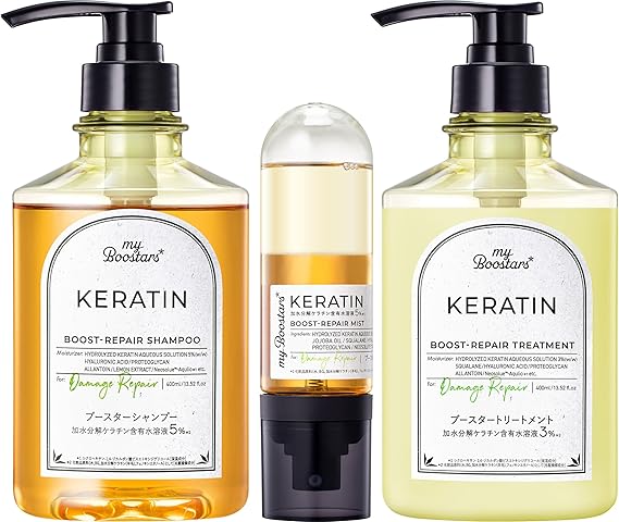 myBoostars(マイブースターズ) 【ケラチン】シャンプー&トリートメント&ブースターミスト 3点セット[ダメージリペア] a