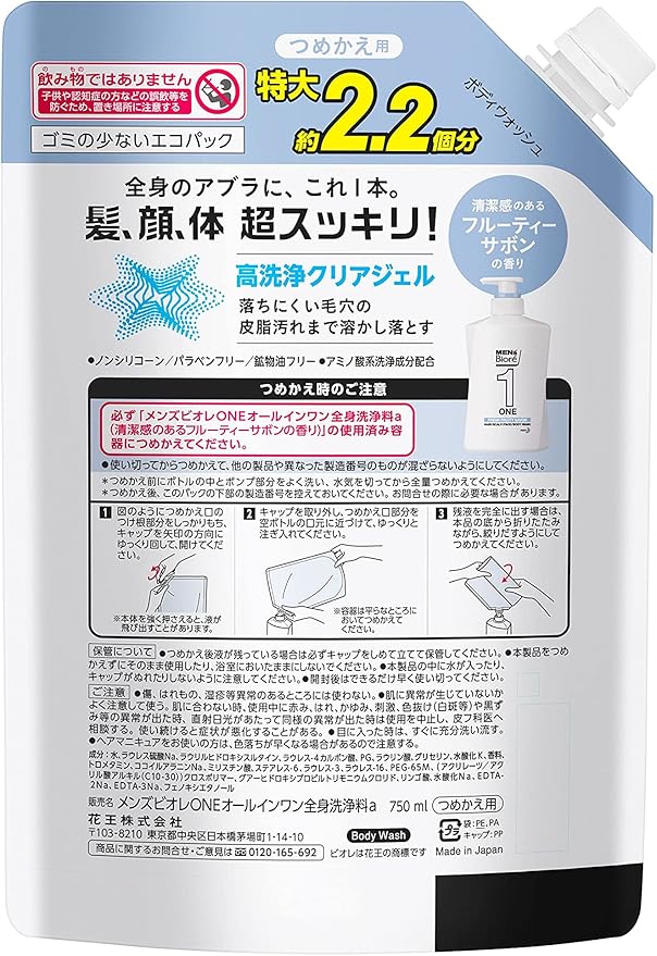 メンズビオレ ONE オールインワン全身洗浄料 フルーティーサボンの香り 大容量詰替 750ml 父の日 ギフト a