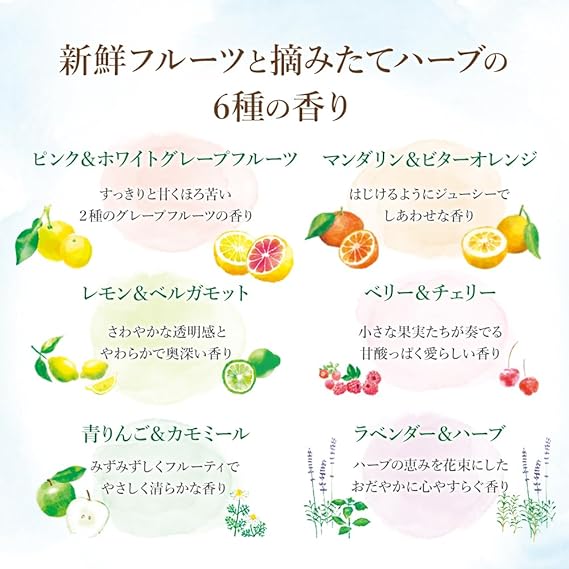 「アロマルセット」Aroma(香り)+Rucette(レシピ)フルーツやハーブ香りをブレンドしたフレッシュでみずみずしい香りのシリーズです。