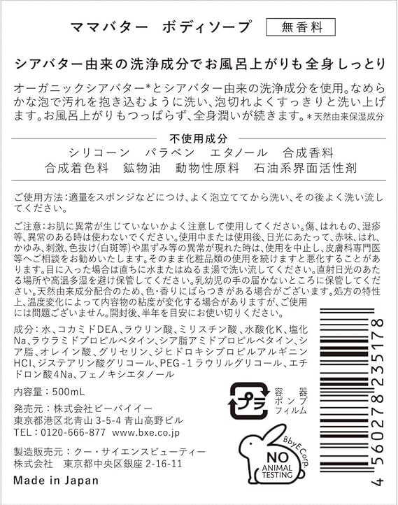 MAMA BUTTER(ママバター) 無添加 ボディソープ 無香料 【オーガニックシアバター配合 高保湿】 500ml 500ミリリットル (x 1) a