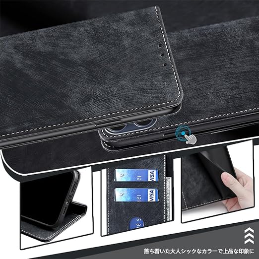 AiMaoo OPPO Reno13 A 5G/Reno13 F 5G 対応 ケース 防塵 耐衝撃 傷つけ防止 軽量 手作り PUレザー カード収納 RFID磁気防止 マグネット スタンド機能 ケース 手帳型 OPPO Reno13 A 5G/Reno13 F 5G 用 (ブラック) a