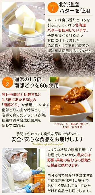 北海道産バターを使用。ルーには良い香りとコクを引き出してくれる北海道バターを使用しています。子供