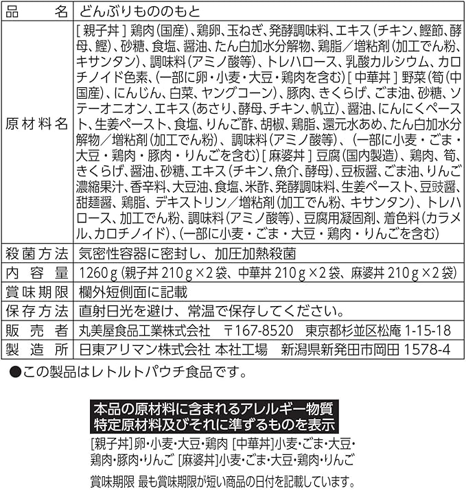 丸美屋食品工業 どんぶりの素 アソート詰合 3種×各2個(麻婆丼 中華丼 親子丼) 1260g a