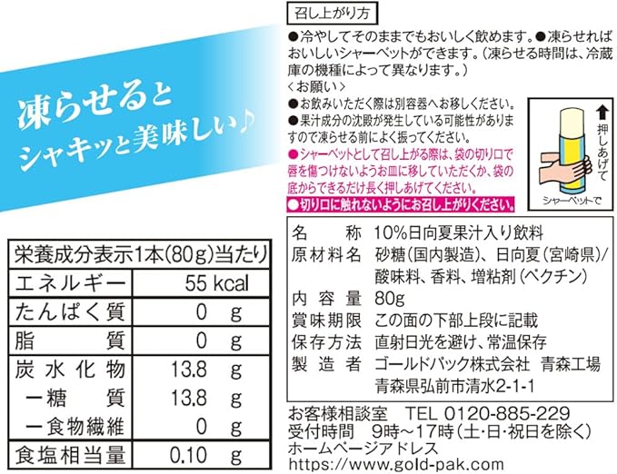 宮崎県産日向夏果汁を使用した、凍らせてシャーベットとして召し上がれます。