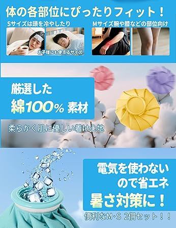 アイシング 氷嚢 2個(S+M) セットアイスバッグ 氷のう 大口径設計 首・肩用 スポーツクールダウン(野球 サッカー ゴルフ肘 膝 足首 頭 ケガ対応) 家庭用保冷グッズ a