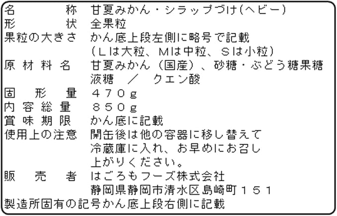 はごろも 甘夏みかん 850g (4281) a