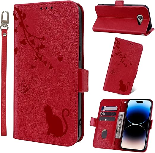 Basio kyv47 ケース basio4 ケース 財布型 kyv47ケース 手帳型 ベイシオ4ケース basio4 ケース手帳型 ベイシオ4 カバー KYOCERA BASIO 4 携帯ケース スマホケース Jajaful basio kyv47 手帳型ケース 耐衝撃 スタンド機能 カード収納 PUレザー 軽量 猫 赤 a