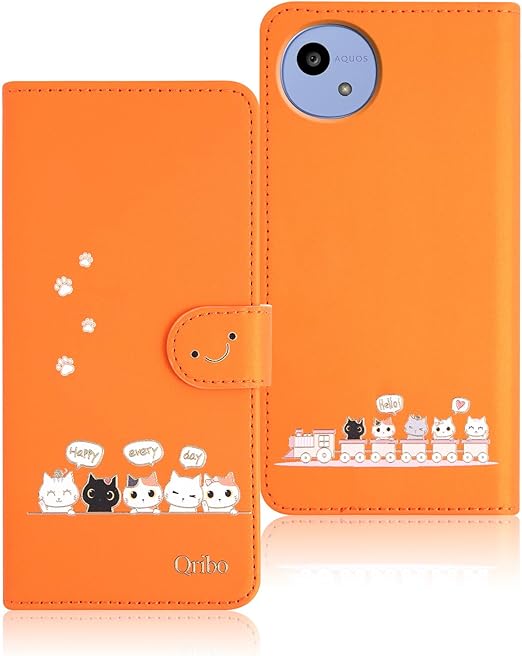 Qribo 適用の aquos wish5 ケース 手帳型 アクオスウィッシュ5 手帳ケース シンプルなのに可愛いデザイン エンボス加工猫柄 うれしい気持ち 6.6インチ対応 アクオスwish5ケース AQUOS WISH5 SH-52F カバー aquos wish 5 スマホカバー 薄型 防水 の耐久性 滑り防止 美しい 贈り物 友達 - オレンジ a