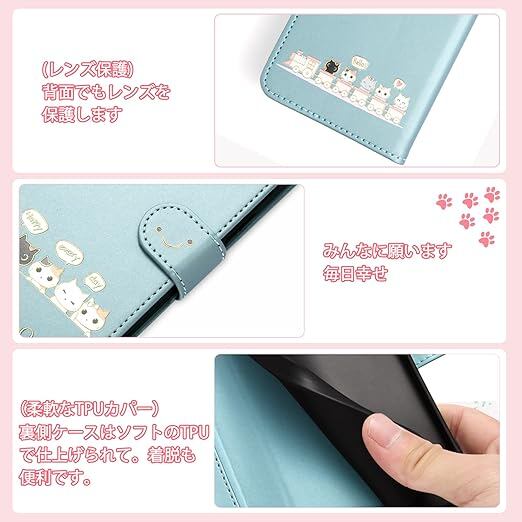 Qribo 適用の aquos wish5 ケース 手帳型 アクオスウィッシュ5 手帳ケース シンプルなのに可愛いデザイン エンボス加工猫柄 うれしい気持ち 6.6インチ対応 アクオスwish5ケース AQUOS WISH5 SH-52F カバー aquos wish 5 スマホカバー 薄型 防水 の耐久性 滑り防止 美しい 贈り物 友達 - ブルー a