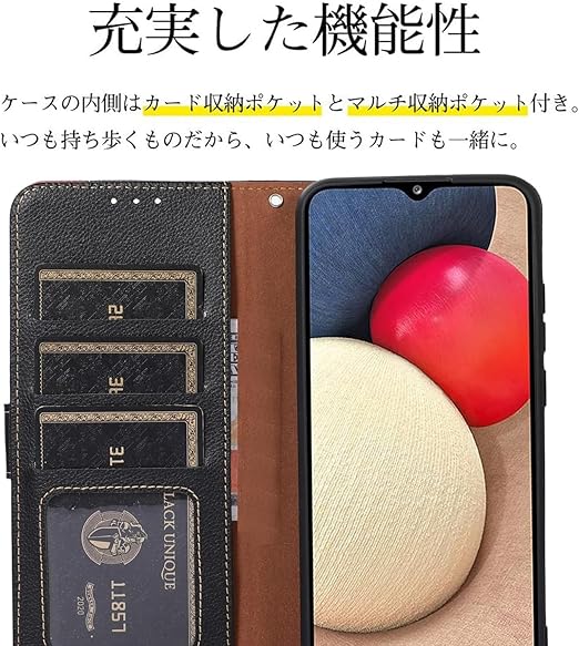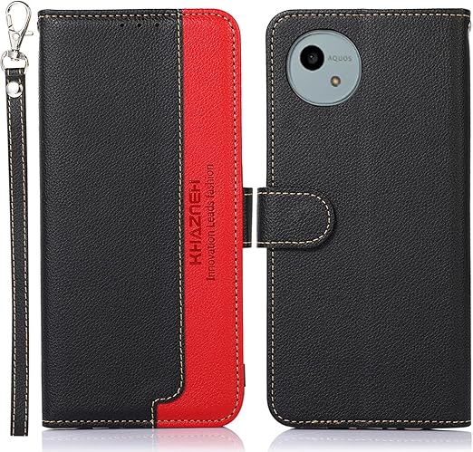 WANWO AQUOS wish5 ケース 手帳型 アクオス ウィッシュ5 スマホケース SH-52F カバー 財布型 ストラップ付き [RFIDブロッキング] 高級PUレザー マグネット開閉式 カード収納 横置きスタンド機能 耐衝撃 人気 便利 おしゃれ ブラック a