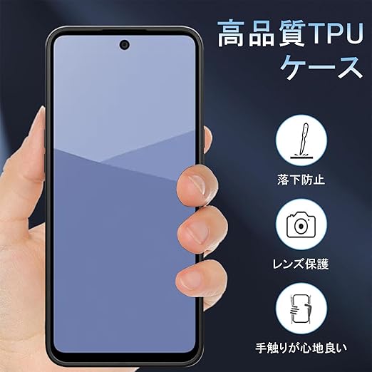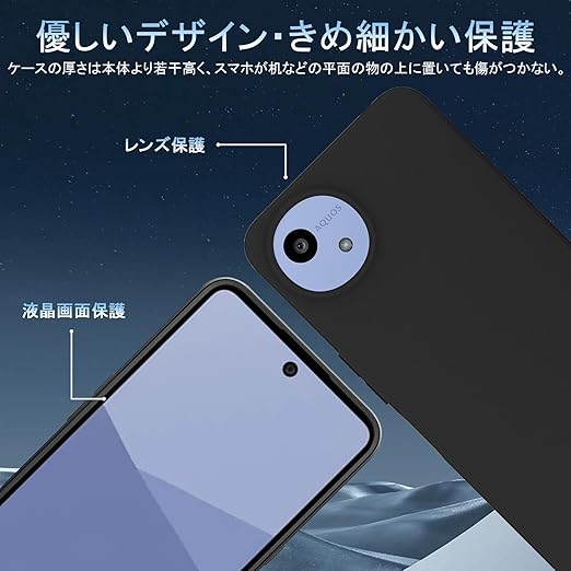【レンズとスクリーン保護】ケースの厚さは本体より若干高く、aquos wish5が机などの平面の物の上に置いても傷がつかない。スマホが落下した際に液晶画面やレンズに傷が付かないようにする。