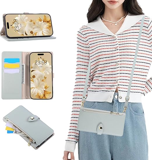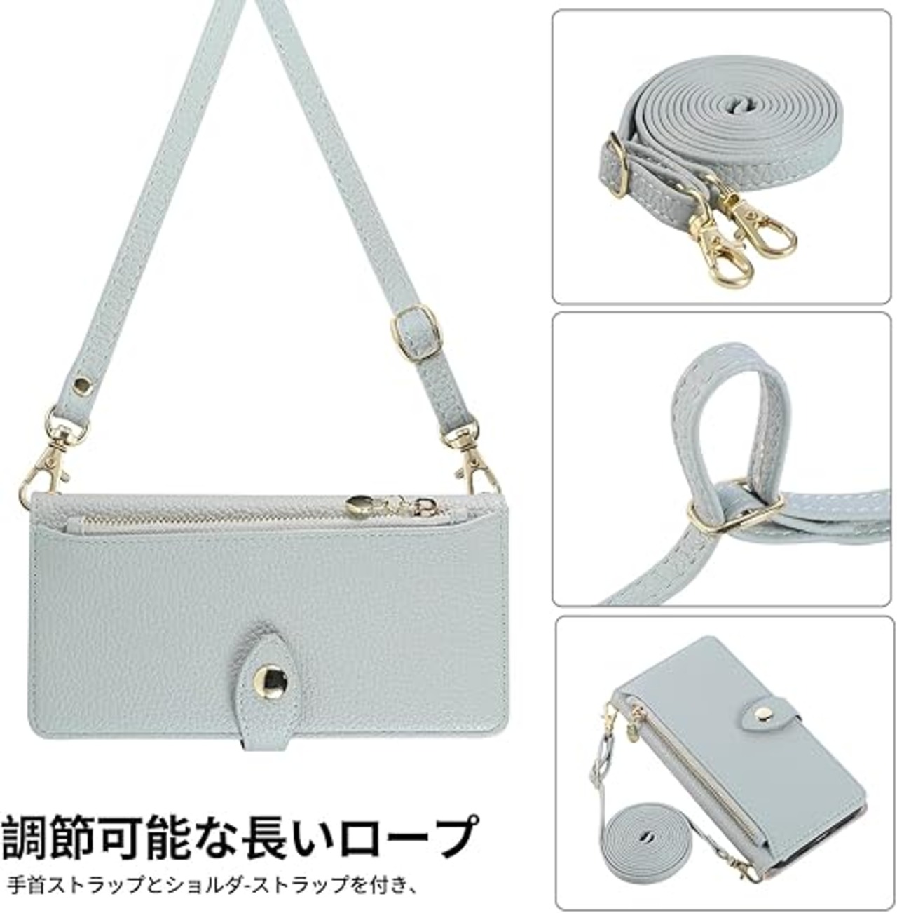 TEDTIKJT AQUOS wish5ケース 手帳型 ウィッシュ5 手帳型ケース 肩掛け wish 5 ケース ファスナー型 小銭入れ ウィッシュ 5 耐衝撃 保護カバー aquos wish 5 カバー 財布型 スタンド機能 カード収納 AQUOS wish5ケース 高級PU肌感レザー ライチ柄エンボライン レトロ シンプル 上品 贈り物 -青 a
