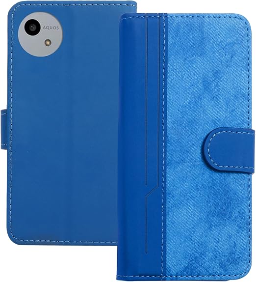 TEDTIKJT Aquos wish 5 ケース 手帳型 wish5 ケース 携帯カバー 全面保護 高級PUレザーとデニムの組み合わせデザイン Sharp aquos wish5 手帳型ケース カード収納ポケット 横置きスタンド機能 AQUOS WISH5 ウィッシュ5 カバー 財布型 シンプルなビジネススタイル アクオスウィッシュ5 スマホケース -青 a