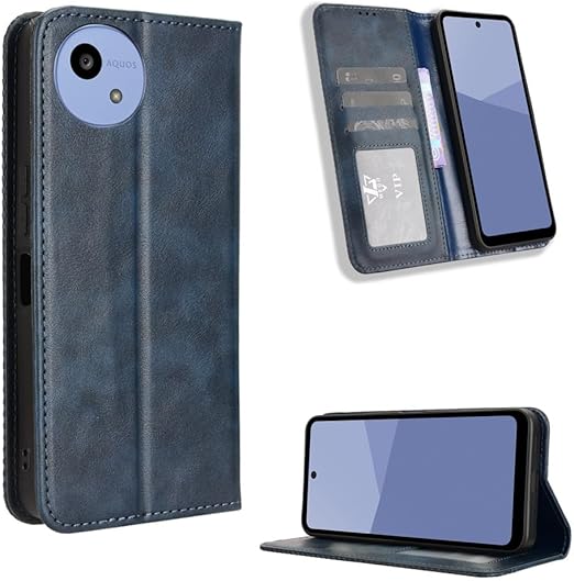 対応 AQUOS wish5 ケース 手帳型 AQUOS Wish 5 手帳型ケース アクオスウィッシュ5 カバー 手帳型 PUレザー カード収納 財布型 軽量 耐衝撃 wish5 ケース マグネット スマホケース 横置き機能 (ダークブルー) a