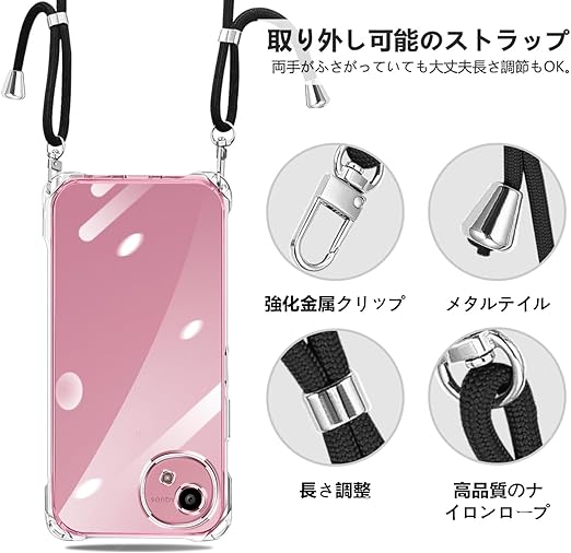 AQUOS Wish5 用 ケース クリア ショルダー aquos wish5 SH-52F スマホケース アクオス ウィッシュ5 カバー 肩掛け 斜めかけ 縄掛けケース 透明 TPU 薄型 耐衝撃 携帯ケース 紐付き 斜めがけ 織りストラップ付き ネックストラップ ショルダー ケース 縦/横 2WAY 長さ調整可能 取り外し可能 落下防止 紛失防止 (クリア) a