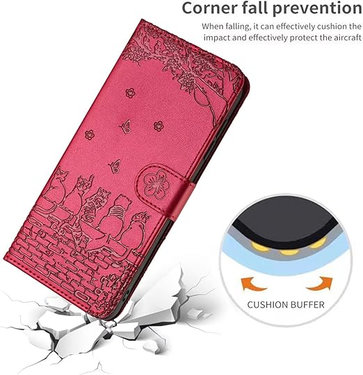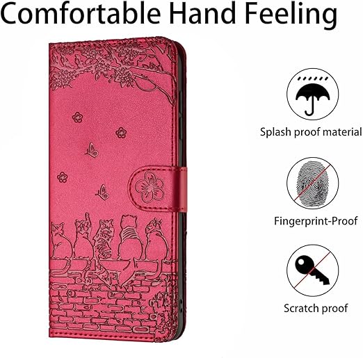 AQUOS wish5 ケース手帳型 レザー wish 5 カバー 内蔵マグネット軽量 耐衝撃 【TEDTIKJT】 アクオスウィッシュ5 ケース 手帳型 桜の下の猫 aquos ウィッシュ 5 スマホケース カード収納 スタンド機能 収納 人気 高級PUレザー (Aquos wish5 ケース, 赤) a